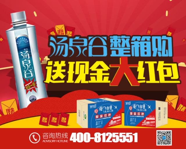 凡是购买整箱汤泉谷VIP338ml\VIP530ml饮用天然矿泉水,扫箱内二维码,即可获得现金红包哦!